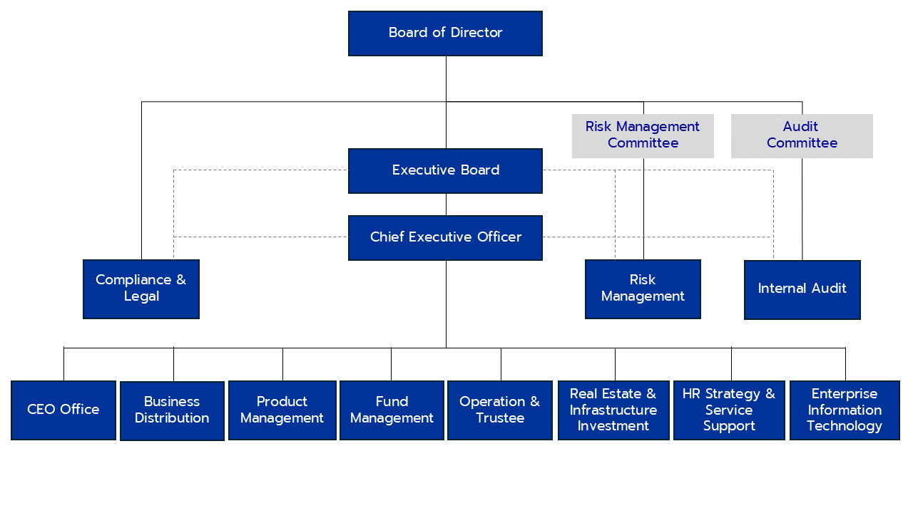 มิตรแท้ตลอดเส้นทางลงทุน เกี่ยวกับเรา ข้อมูลบริษัทวิสัยทัศน์โครงสร้างผู้ถือหุ้นคณะกรรมการบริษัทโครงสร้างองค์กรผู้บริหารผู้จัดการกองทุนสถานที่ตั้ง โครงสร้างองค์กร